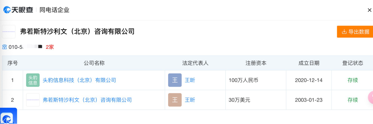天眼查显示,头豹信息科技(北京)有限公司目前的联系电话为010-59****80,联系邮箱为wang**@china-invest.com,与沙利文北京共用同一个联系电话和邮箱。