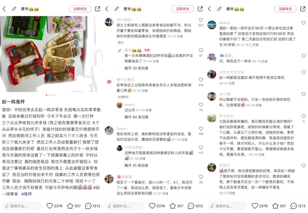 在小红书上,反映赵一鸣这样的量贩零食店的“鬼秤”情况并不在少数。