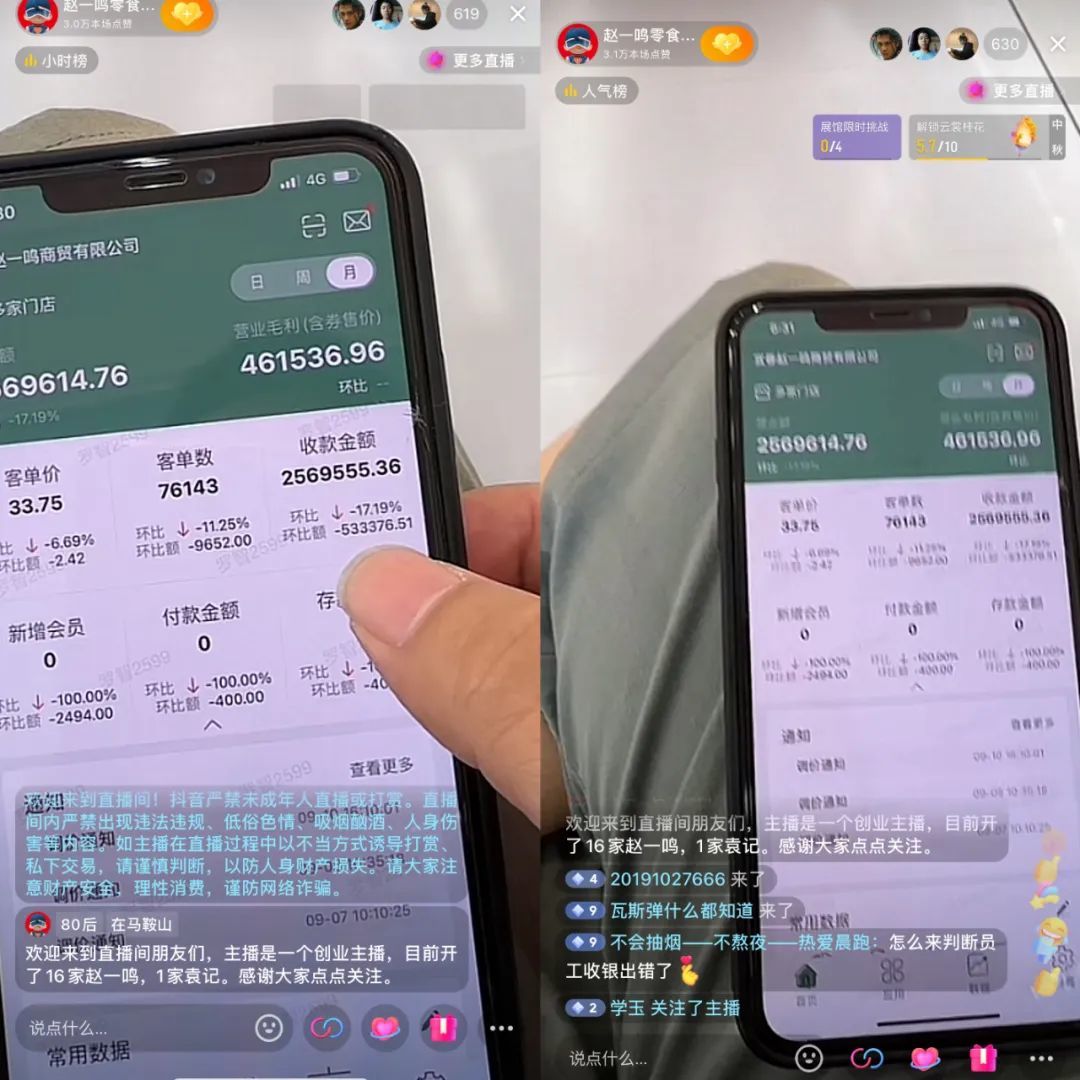 开了16家赵一鸣门店的加盟商罗智,偶尔会在抖音上开直播,在最近的一次直播中他展示门店截至9月14日的营业数据:客单价、客单数、收款额等多项关键数据均呈环比大幅下滑,平均每家店毛利仅2.9万,这意味着未必能覆盖房租、水电、人工成本。