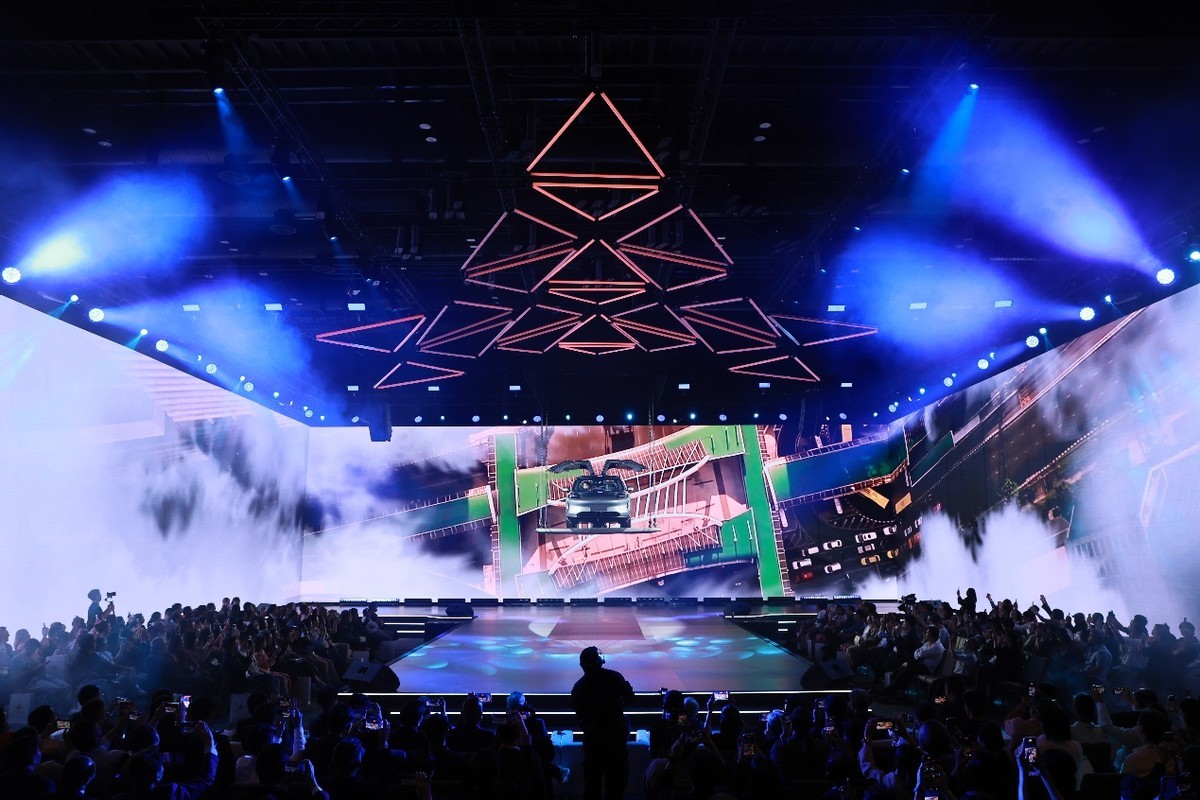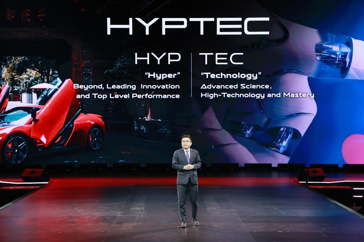 发布会上,HYPTEC HT震撼启幕,展翼而来,从天而降。其流线型车身在灯光的映照下熠熠生辉,惊艳无比。这一极具创意与魄力的登场方式,充满科技与高级感,极具视觉冲击力。让现场嘉宾赞叹之余,更对HYPTEC HT充满了无限遐想与期待。