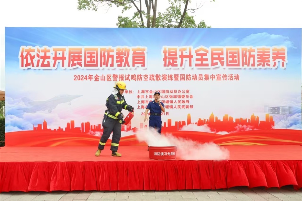 “我感觉现场演练很真实,在体验中了解了防空警报响起后的撤离顺序,还学到了很多灾难来临时的防护知识,灭火器使用、心肺复苏还有三角止血包扎教学也很生动易懂。”在“依法开展国防教育 提升全民国防素养”2024金山区警报试鸣防空疏散演练暨国防动员集中宣传张堰镇主会场活动上,参加演练的初二学生俞泽恺说。