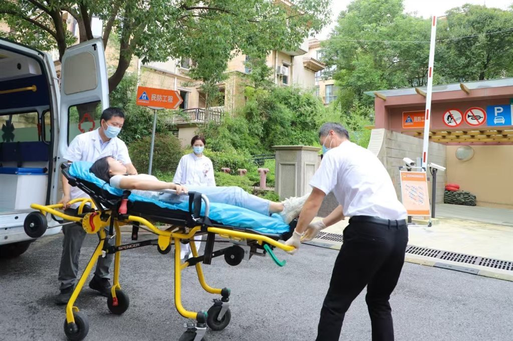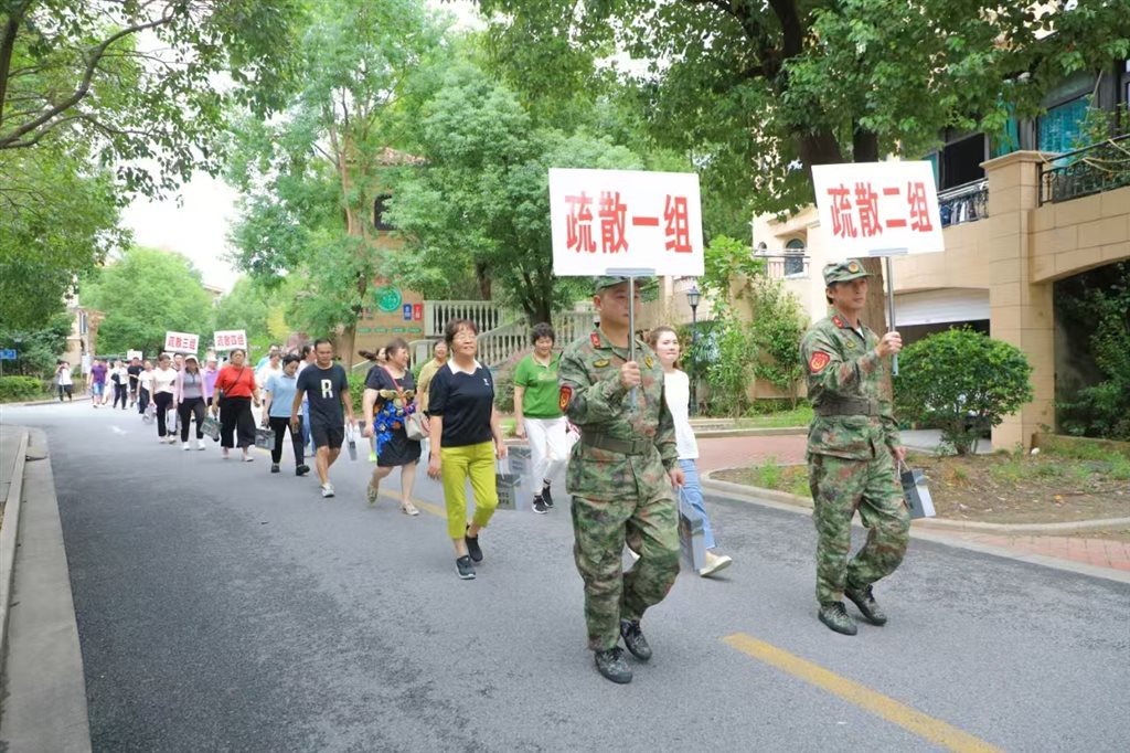 11时35分,防空预先警报拉响,全体人员迅速进入“备战”状态,各演练队伍组长清点人数、举牌引导,时刻准备带领居民“兵分”两路纵队,按照计划线路开展行动;警戒维护组负责协助交通管制和秩序维护,确保沿线安全有序;医疗救护组、心理防护(疏导)组人员装备齐全、均匀分布各方位,确保应急处置工作及时到位。