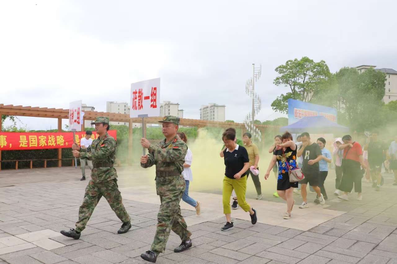 9月21日(星期六)是我国第24个全民国防教育日,也是上海市人民防空警报试鸣日。现场迅速集结起多支队列,引导组、警戒维护组、医疗救护组、心理防护(疏导)组、物资发放组、民兵应急分队“蓄势待发”,来自镇区各居民区的200名人员参加演练。