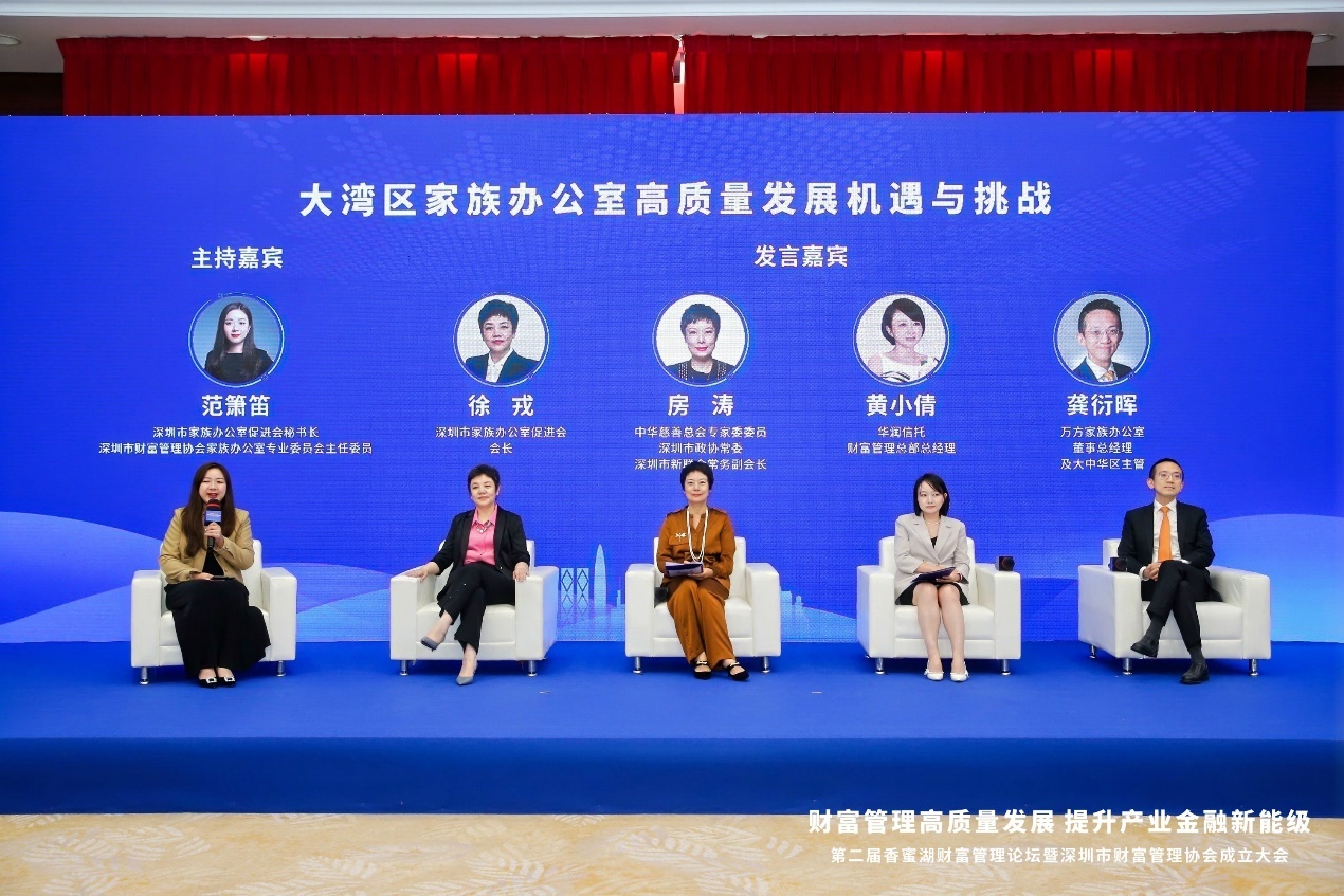 在以“大湾区家族办公室高质量发展机遇与挑战”为主题的圆桌论坛上,深圳市家族办公室促进会会长徐戎、中华慈善总会专家委委员、深圳市政协常委房涛、华润信托财富管理总部总经理黄小倩、万方家族办公室董事总经理及大中华区主管龚衍晖、深圳市家族办公室促进会秘书长、深圳市财富管理协会家族办公室专业委员会主任委员范箫笛等多位业界专家围绕“家族办公室发展现状与趋势”、“家族办公室如何践行买方立场”、“家族办公室行业标准”、“家族办公室与家族慈善”、“家族办公室全球资产配置”、“香港家族办公室发展经验借鉴”等多个热点话题与深度主题分享了相关思考和实践经验。