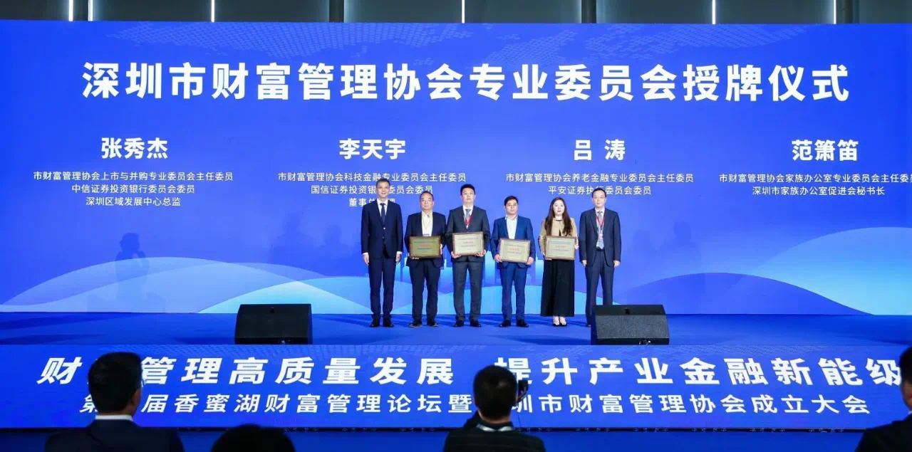 深圳市财富管理协会是由深圳市委金融办主管,招银理财、东方富海、平安理财、建信理财、博时基金、南方基金、中信证券、国信证券8家单位共同发起,汇聚了银行理财、银行、保险资管、保险、证券、证券资管、信托、期货、公募基金等74家头部财管管理机构,设有科技金融、养老金融、家族办公室、上市与并购四大专业委员会,会员机构在管规模超12万亿元,占全市总规模近一半,致力于打造财富管理领域跨业态、跨地域的综合服务交流平台。为行业规范化、专业化发展提供了强有力的组织保障,标志着深圳在财富管理领域迈出了坚实的一步。