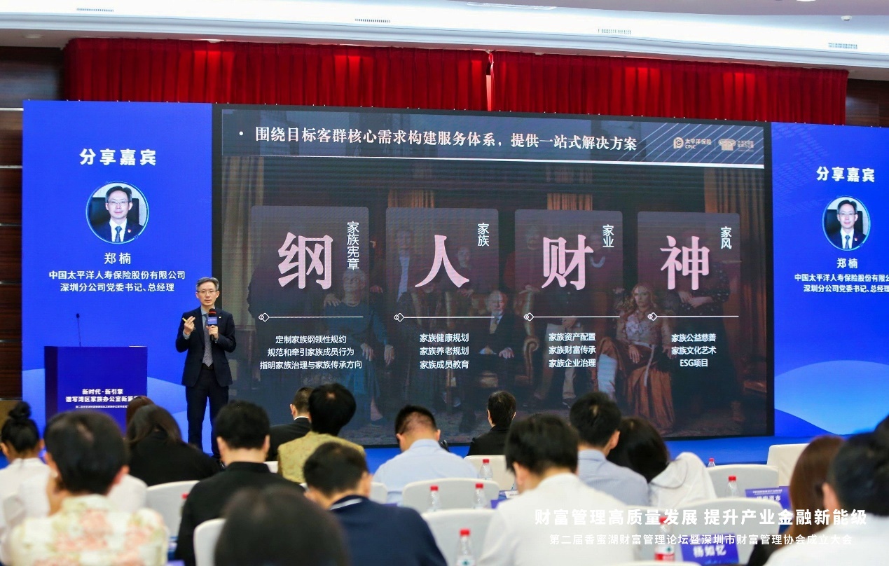 中国太平洋人寿保险股份有限公司深圳分公司党委书记、深圳市上海商会会长郑楠发表了《大湾区家办的发展机遇与战略思考》演讲交流,分享大湾区家族办公室具备天时、地利、人和的发展机遇,应真正以客户需求为导向,以专业服务为客户创造价值。