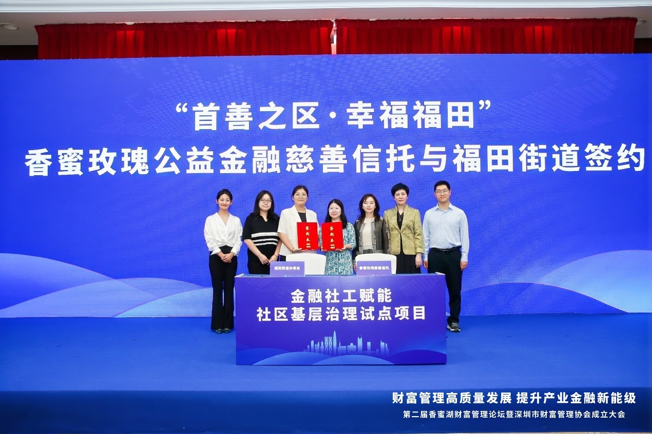 在本次论坛上,“香蜜玫瑰公益金融慈善信托”正式发布,该慈善信托由16位金融和公益领域的专家共同出资捐赠,由中国金融教育发展基金会作为委托人,华润信托作为受托人,交通银行深圳分行作为托管行,深圳市创新企业社会责任促进中心作为监察人。该慈善信托旨在通过金融教育提升社区居民的金融素养,并促进女性在ESG方面的榜样作用。该笔信托是“金融+慈善”创新融合的重要里程碑。