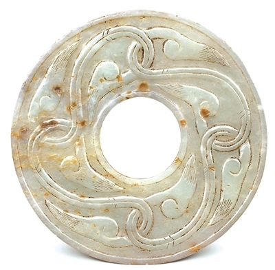 唐代青白玉忍冬纹璧