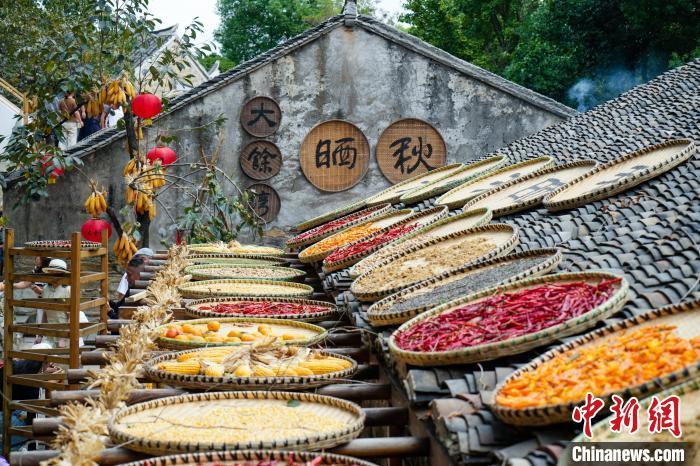 村民们纷纷将自家收获的辣椒、玉米、南瓜、红薯等农作物摆放在竹匾、竹筛或屋顶上进行晾晒,由此构成了一幅幅色彩斑斓的秋日景象。大余湾景区总经理卢千介绍,今年的晒秋节内容更加丰富,数十个院落一起呈现晒秋盛景,市民游客在每个晒秋情景内都可进行互动体验。