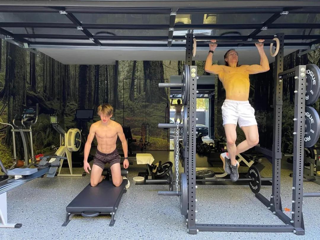 ▲约翰逊和儿子一起锻炼