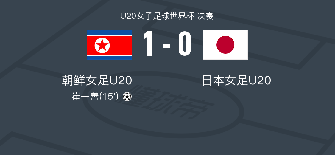 在北京时间9月23日举行的U20女子足球世界杯决赛中,朝鲜女足U20迎战日本女足U20。比赛中,朝鲜女足U20的崔一善成功破门,帮助球队取得领先。最终,朝鲜女足U20以1-0战胜日本女足U20,赢得了比赛的胜利。
