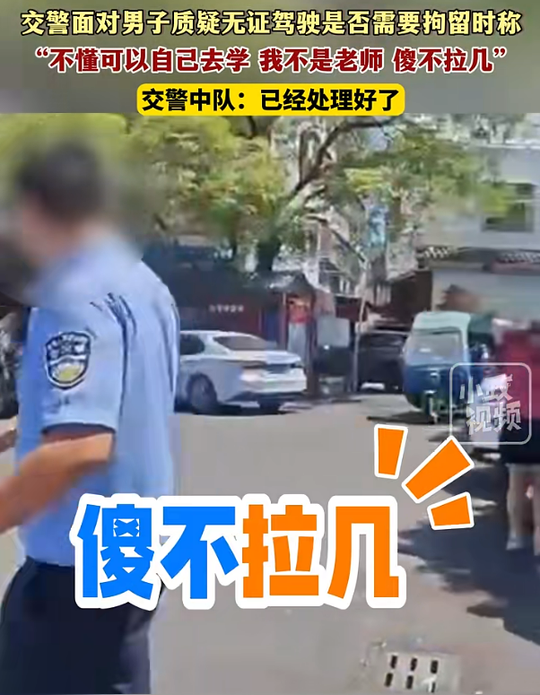 9月22日,网传视频显示,广东潮州一交警面对男子质疑无证驾驶是否需要拘留时称:“不懂可以自己去学,我不是老师,傻不拉几的。”