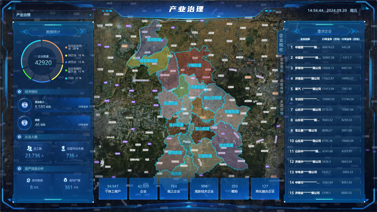 如何在整体发展形势向暖向稳的当前,推动企业发展形势的向好向高?章丘区一方面直面企业诉求,设立“亲清会客厅”平台,通过政企常态化“面对面”沟通交流,实现 “企呼我应”更高效的服务。另一方面,依托数据要素融合赋能平台,上线产业治理模块,从爱山东企业端、山东通工作端、电脑端和大屏端“四端”全面获取和采集企业数据,实现以各产业园区、产业链条为单位统计、分析、研判经济数据,同时全面汇集企业用工审批、金融服务、产品发布等诉求信息,给园区、企业进行画像,一企一策,实施清单化、精准化、定制化服务。