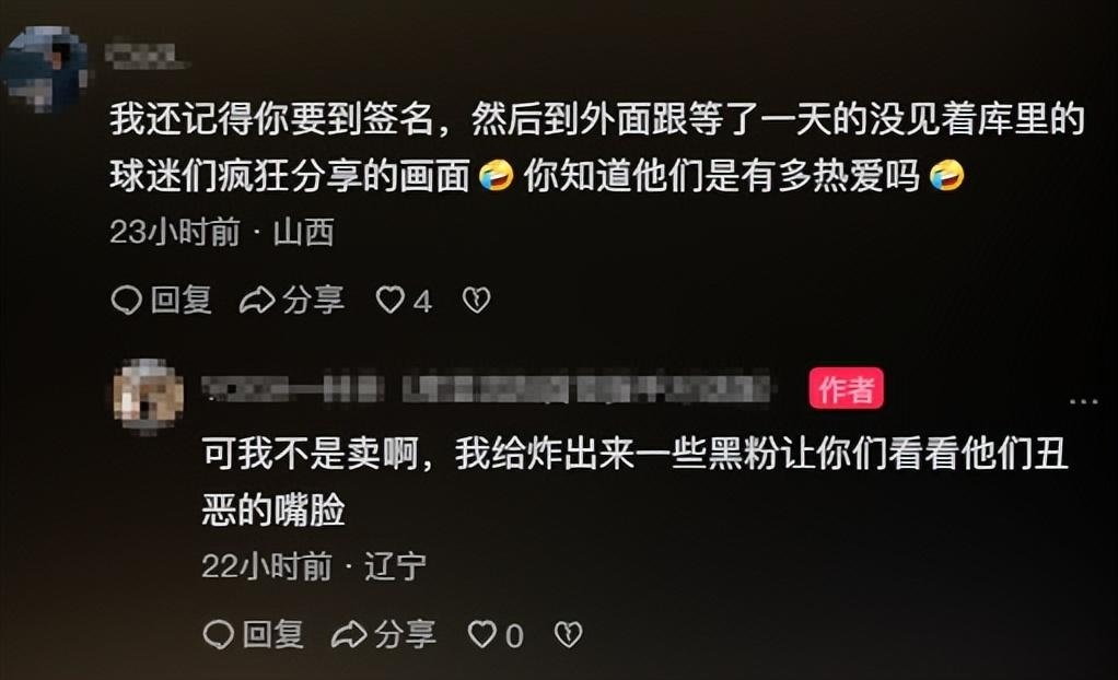 对于该球迷高价售卖库里签名球衣的行为,有网友表示抵制,并称库里本人并不希望见到球迷售卖自己签名。对此该球迷在社交平台上做出回应,他称自己并不是真的想卖球衣,只是放着让大伙看。