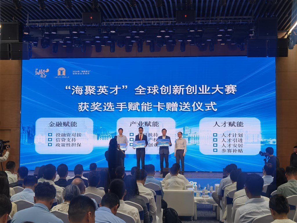 在第四届“海聚英才”全球创新创业大赛总决赛上,黄浦区推荐的3个优质项目从全球约12000个项目中脱颖而出,最终斩获2枚银奖和1枚铜奖。仪式上,来自深圳问道以芯科技有限公司、奕行智能科技(广州)有限公司、上海锋行致远科技有限公司的获奖选手,被颁发“海聚英才”创新创业赋能卡,提供涵盖最高65万元参赛奖励的金融、产业、人才等多方面赋能支持。