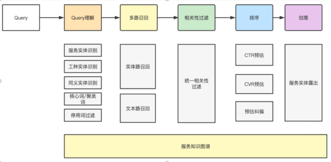 挖掘出的服务实体和实体同义落地于搜索场景的召回、排序、相关性过滤、创意、投放各个链路中