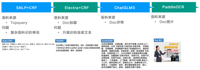 第一阶段,使用传统模型 CRF 进行实体识别,使用语料来源于热门搜索词,其准确率相对较低(75%),因此经过人工审核。上线后头部相关性提高,通过提高用户体验带来了商业收入提升。本阶段通过快速上线,验证了结构化信息的作用。