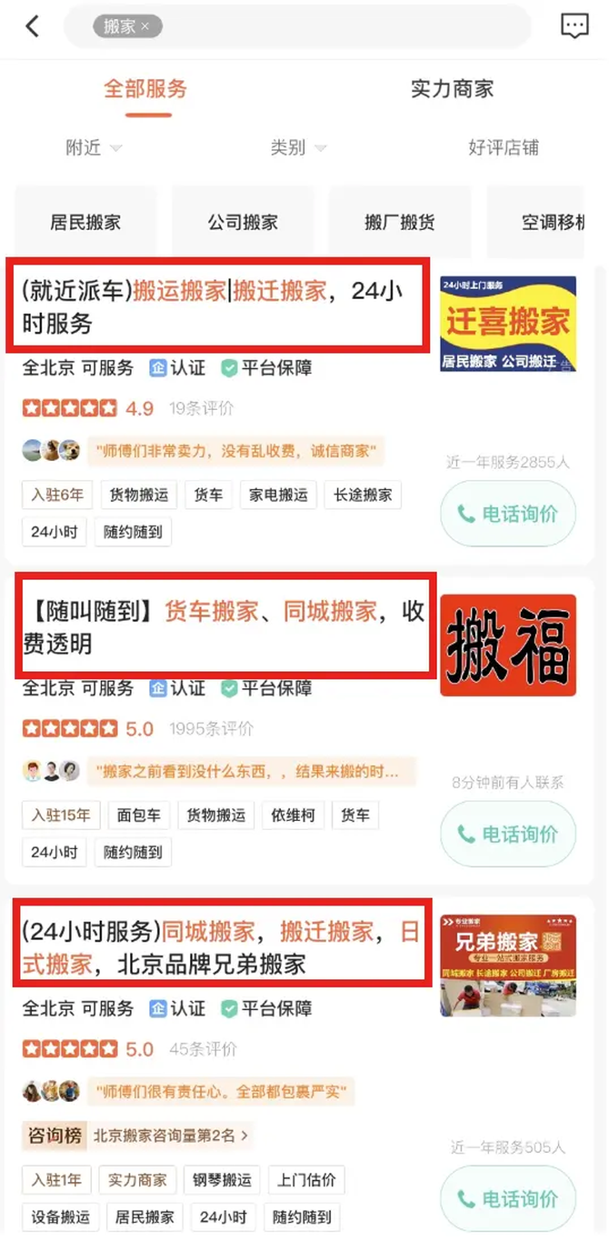• 生活服务:搬家、开锁、空调维修、管道疏通