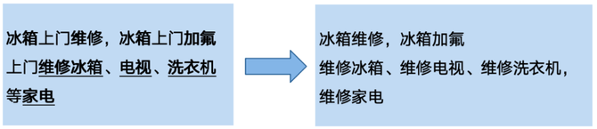服务实体定义:商家所提供服务,一般为动名词组合;如冰箱维修,开锁,搬家,管道疏通