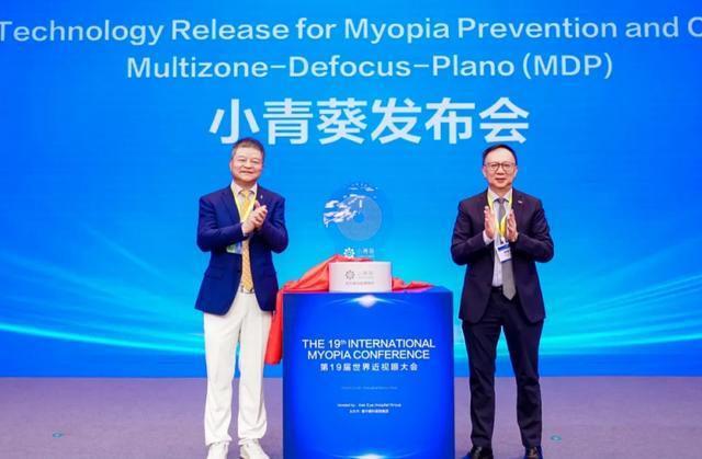 ▲“小青葵”近视预防镜片在开幕式上正式发布