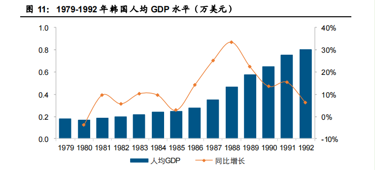 1961年,韩国总统朴正熙上台,效仿日本确立出口导向政策,这种通过采取高关税(平均关税高达50%,奢侈品税达100%)、高进口企业利率(利率高达20%)来抑制国际企业冲击的同时,也保护了国内产业的稳步发展。