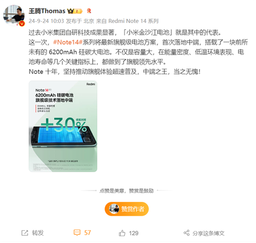 据悉,Redmi Note 14 Pro+所搭载的小米金沙江电池拥有6200mAh超大容量,不仅满足了用户对长续航的迫切需求,更在能量密度、低温环境表现以及电池寿命等关键指标上,达到了旗舰级的领先水平。这款电池的能量密度高达814Wh/L,相比小米数字系列旗舰小米14 Ultra首 发时的779Wh/L有了显著提升。