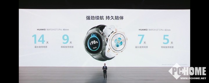 续航方面,华为WatchGT 5 Pro最长使用可以达到14天,常规使用场景可以达到9天;华为WatchGT 5最长使用时间同样可以达到14天。
