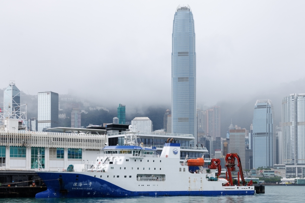 “深海一号”携“蛟龙号”首次访港,停靠在尖沙咀海运码头。(本刊记者 梅肯 摄)
