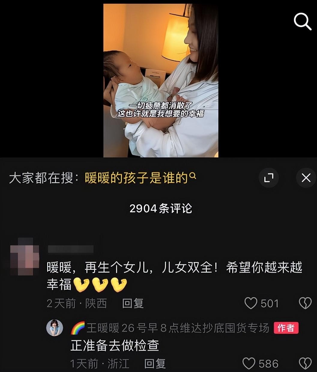 此前,有网友祝福王暖暖再生个女儿凑成儿女双全,王暖暖回复:“正准备去做检查。”
