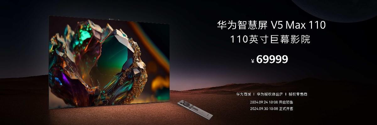 华为智慧屏 V5 Max 110将于9月30日10:08点正式开售,售价69999元。用户可登录华为商城及各大授权电商平台或前往华为体验店、华为授权零售门店进行选购,尽享百寸非凡“巨幕手机”新体验。