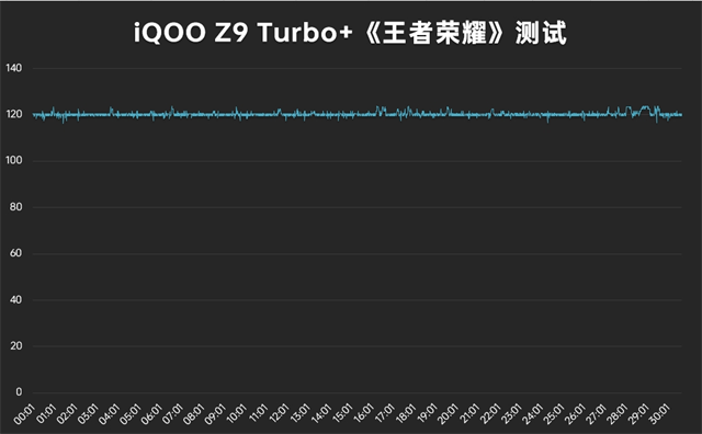 只看跑分还不够,实际的游戏体验才是王道,当然iQOO Z9 Turbo+的游戏体验也不差,首先还是老朋友《王者荣耀》,在游戏中开启最高画质,并且开启120fps模式下,半个小时游戏轻松加愉快,平均帧率120.26,流畅度99.06,最高温度37.8℃,可以说应对起来轻轻松松。