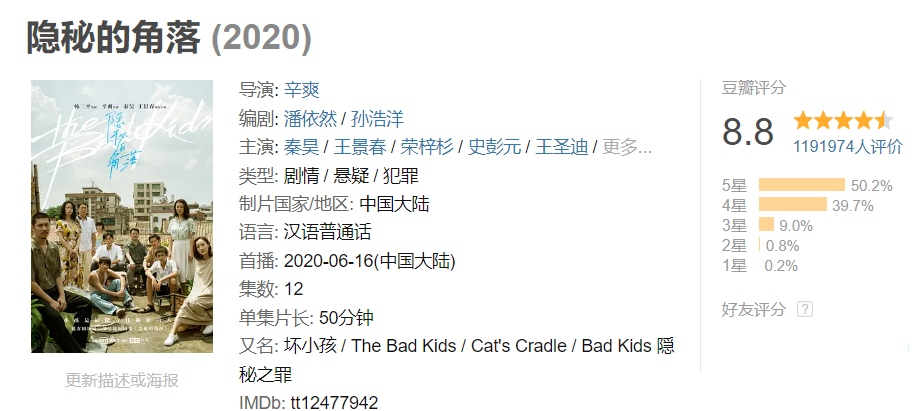 注意,虽然《黄金少年》跟《隐秘的角落》是同一个故事,但严格意义上说跟《隐秘的角落》关系不大,而是《坏小孩》进行了重新的改编。