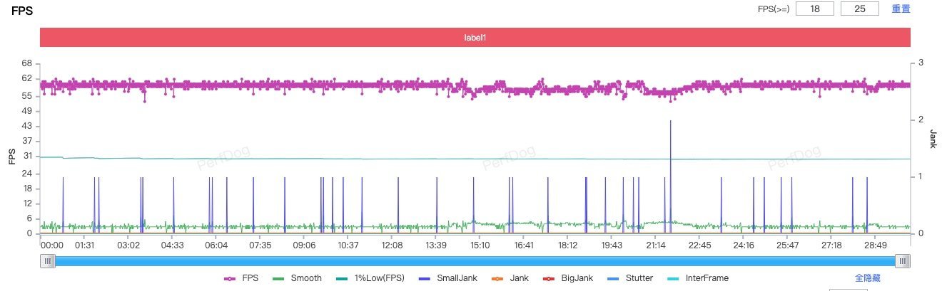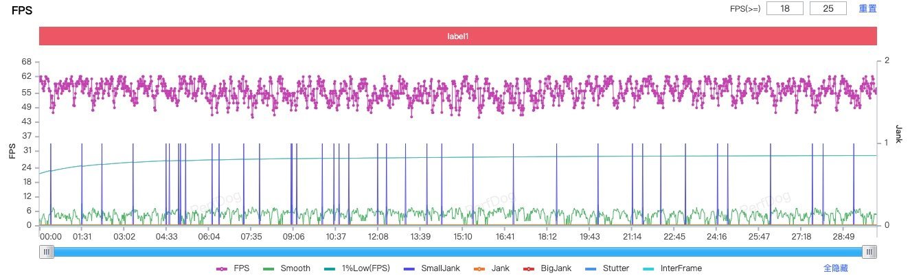 数据就说这么多,来看看实际的游戏测试,在 25 度的室温下,将 iQOO Z9 Turbo+ 的屏幕调整为 200nit 亮度,在《原神》中用夜兰+早柚双风共鸣。半小时的须弥城跑图平均帧率为 59.1 帧,帧率曲线非常稳定。