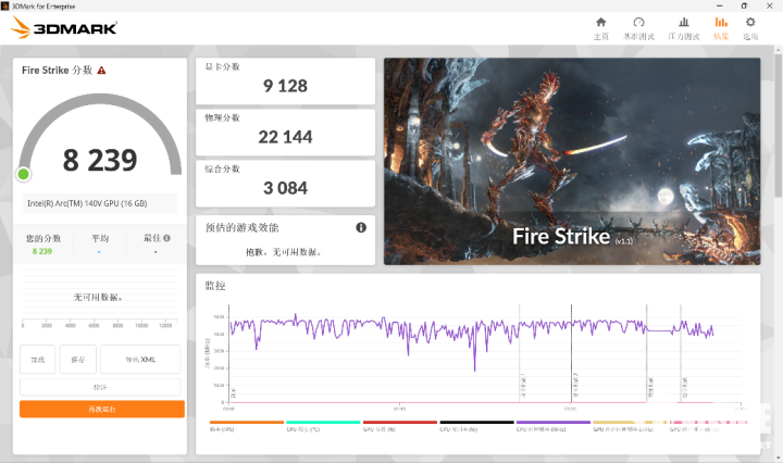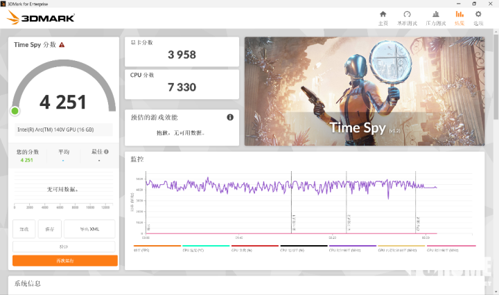 在3DMARK测试中,FireStike场景得分超过8000分,TimeSpy得分4251分,堪比入门级独显!你能想象这么薄的轻薄本用来跑跑黑神话也是毫无压力!