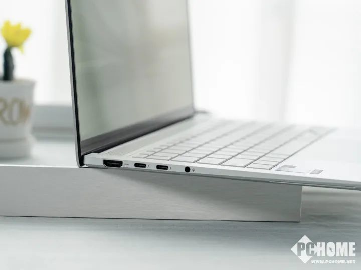 机身接口方面,华硕灵耀14 Air在如此薄的机身内还保留了USB-A口和HDMI接口,难能可贵。两个C口都是满速的雷电4标准(40Gbps传输速度,支持PD充电和DP视频输出),日常使用完全不必扩展坞。