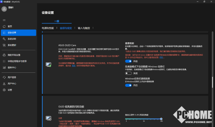 由于这块屏幕使用了OLED材质,许多用户可能会担心OLED烧屏问题,其实不必担心,华硕对此做了完善的针对性举措,包括默认深色模式、OLED像素偏移、老化修复等技术,大家尽可放心使用。