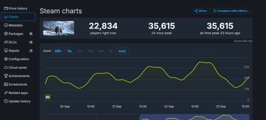 目前《战神:诸神黄昏》Steam在线峰值为35615人,当前在线22834人。