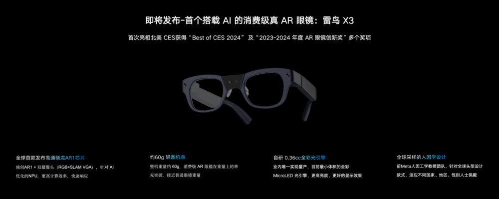 雷鸟创新同样深谙这一趋势,并在技术与产品创新方面展现出强劲的竞争力。作为业内唯一拥有核心光学方案全链路自研及量产能力的AR企业,雷鸟创新通过并线布局MicroLED+光波导、MicroOLED+BirdBath、AI等技术,实现跨越周期的资源、能力积累和高速增长。