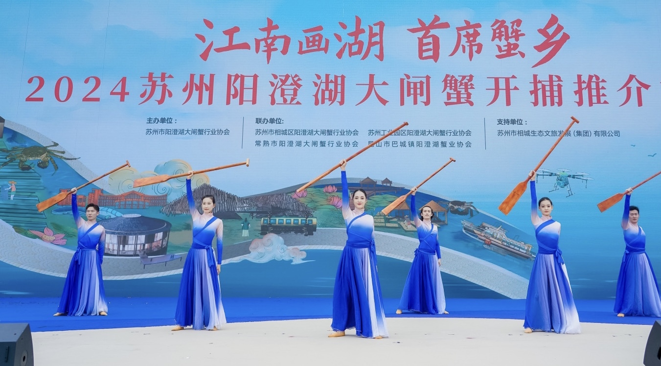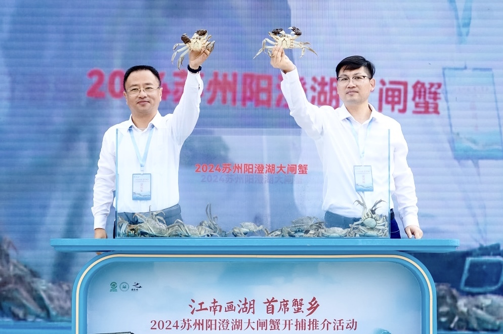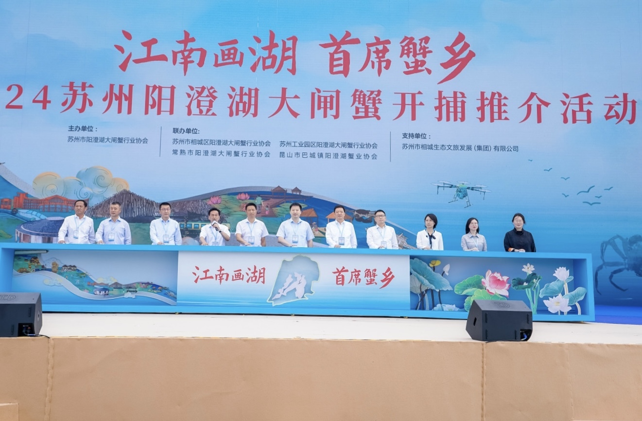 9月25日上午,“江南画湖 首席蟹乡”——2024苏州阳澄湖大闸蟹开捕推介活动在风景秀丽的苏州市相城区阳澄湖镇旅游集散中心开幕。