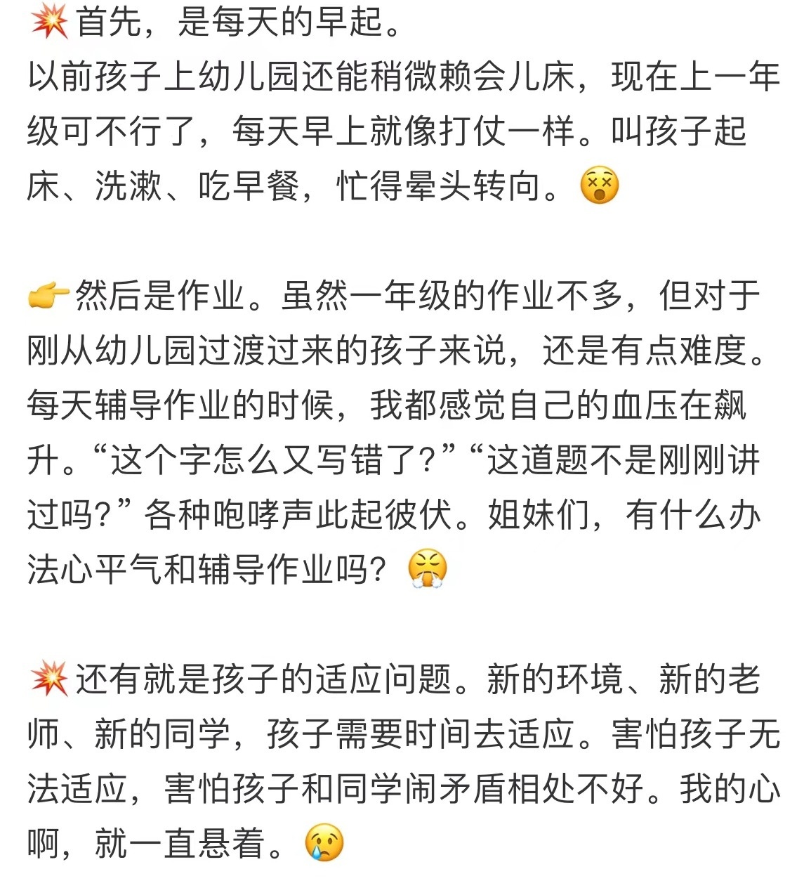 网友吐槽一年级家长难当。图/某社交平台
