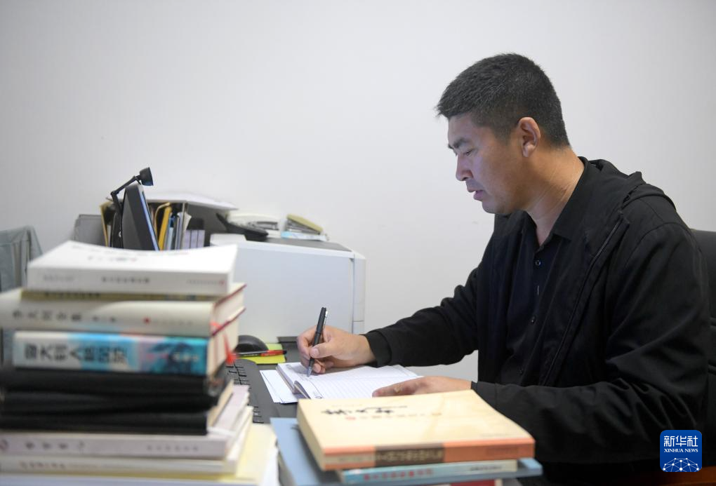 9月22日,赵书明在河北省乐亭县大黑坨村李大钊故居办公室研究史料。