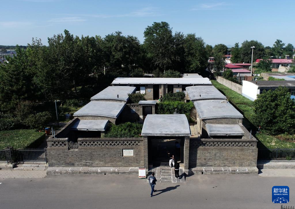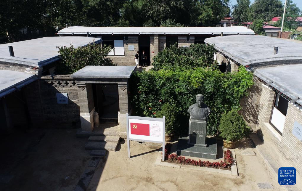 9月22日,游客在河北省乐亭县大黑坨村李大钊故居参观(无人机照片)。