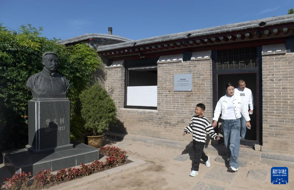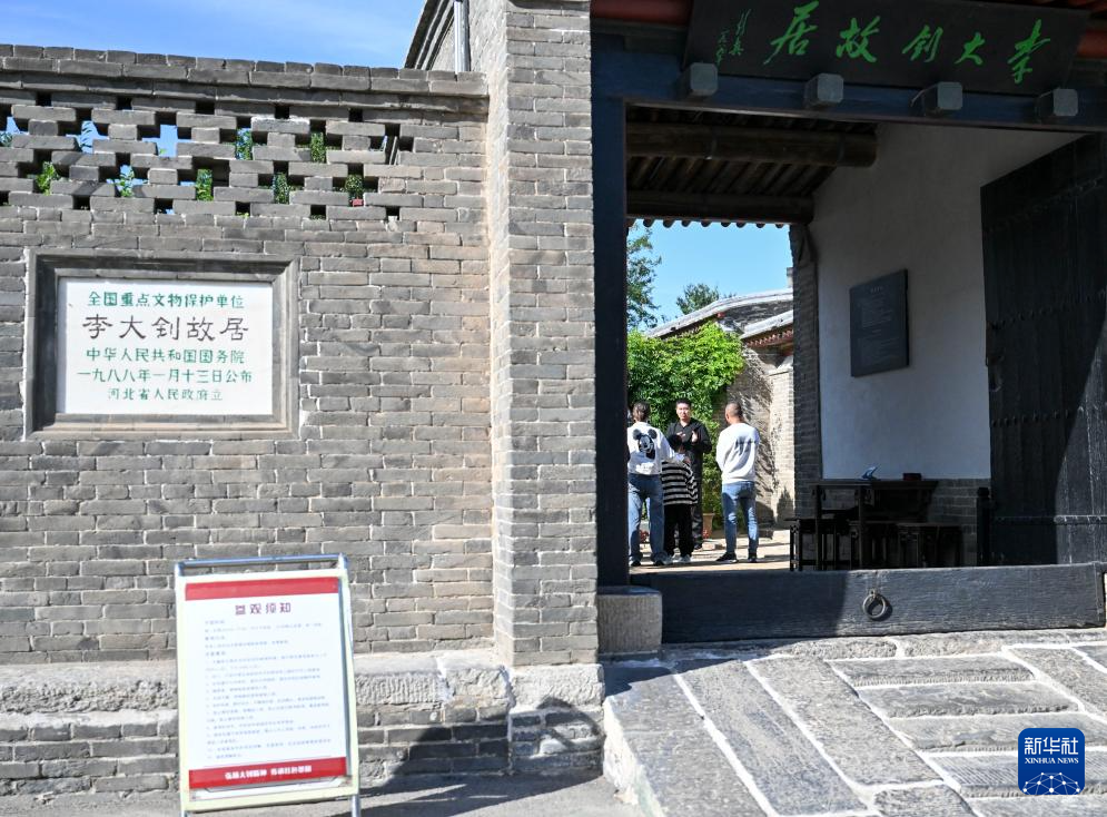 9月22日,游客来到河北省乐亭县大黑坨村李大钊故居参观。