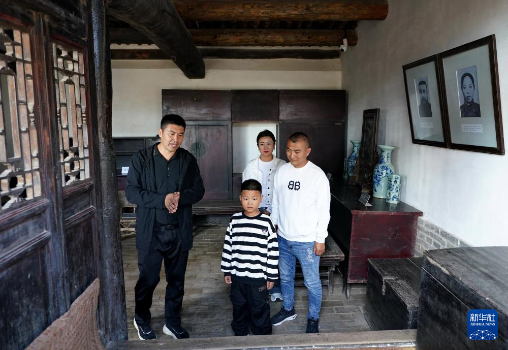 9月22日,赵书明(左三)在河北省乐亭县大黑坨村李大钊故居为游客讲解。