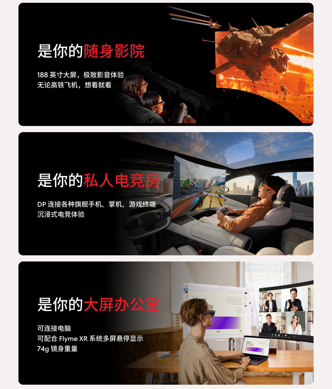 此外,它还可以实现 6 米 188 英寸巨幕,模拟黄金观影位置,在任何地方都能享受影院级沉浸观影体验 。