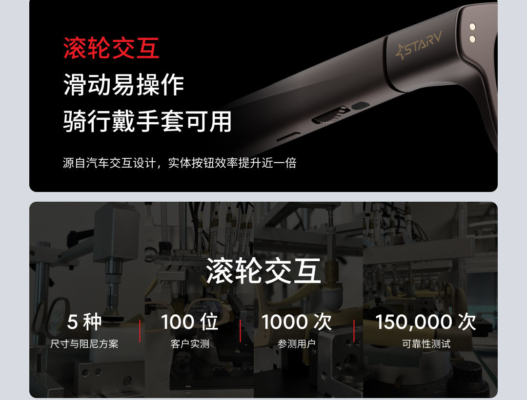 StarV Air2 机身搭载滚轮,支持滚轮交互,具有 5 种尺寸与阻尼方案。StarV Air2 还支持 13 种语言实时翻译,支持闪念速记,会议助手,AR导航等 AI 功能。