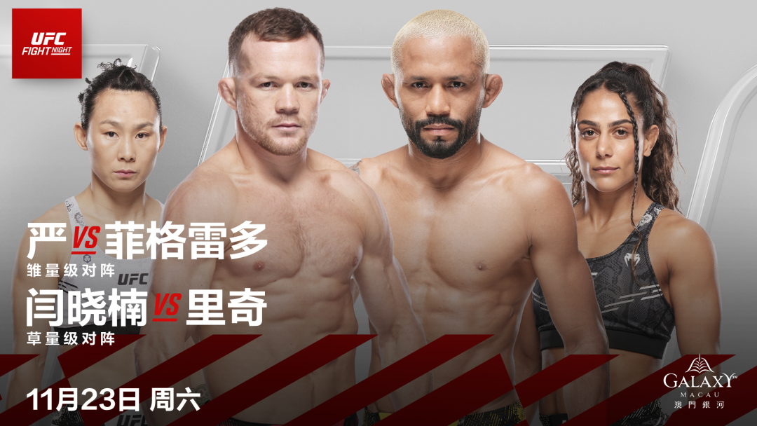 千呼万唤始出来!UFC澳门站在公布后,经过漫长的等待,终于官宣了所有对阵!11月23日,前雏量级冠军彼得-严将对阵前蝇量级冠军菲格雷多,领衔当天的头条主赛。