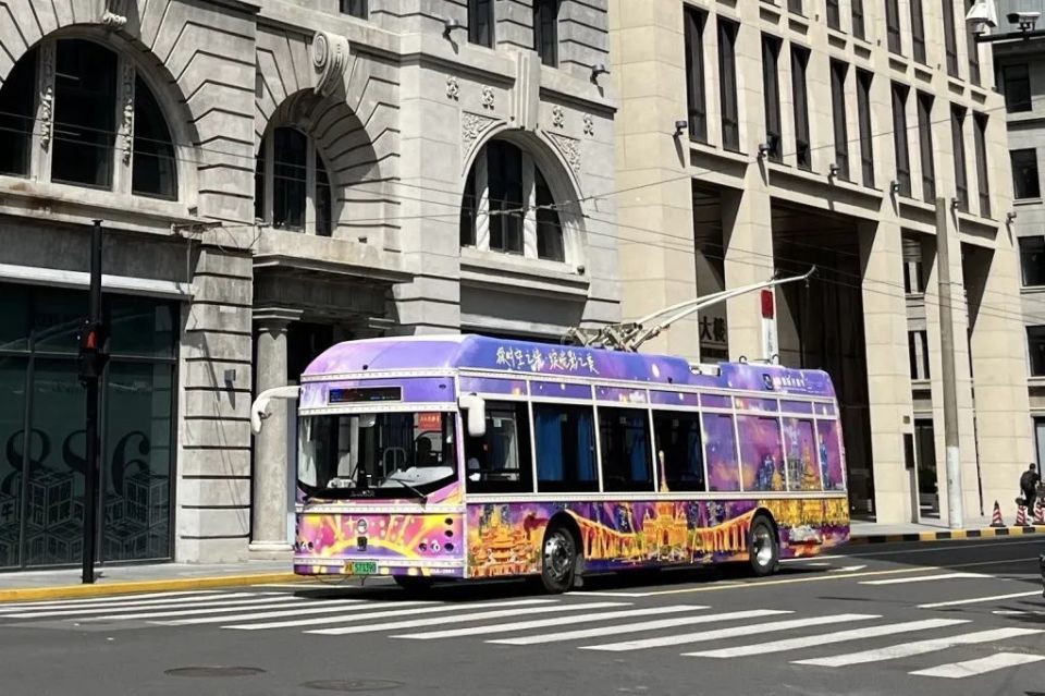 在愚园路江苏路路口,记者看到正在运营的公交20路“光影节主题彩车”,该车的车身以紫色为主色调,上面有万国建筑群、上海展览中心、陆家嘴、静安寺、豫园、武康大楼等六大上海地标建筑的水彩画,再点缀璀璨的光影,使其既富有时尚感又充满浪漫气息。