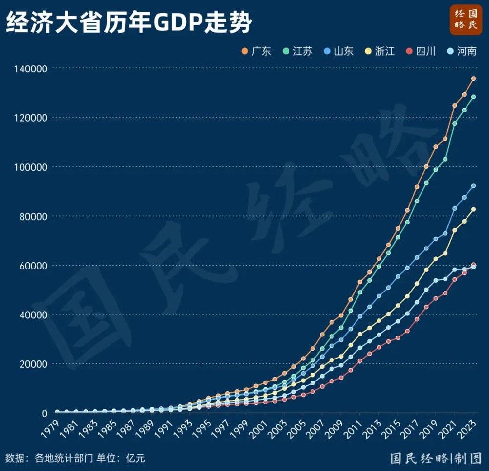 2023年,广东GDP高达13.5万亿,江苏达到12.9万亿,到2025年,广东有望站上14万亿大关,江苏也将成为13万亿大省。