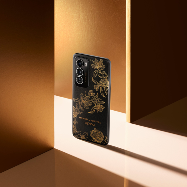 【CNMO科技消息】近日,OPPO携手印度知名时装设计师Manish Malhotra推出了一款特别版手机——OPPO Reno 12 Pro Manish Malhotra限量版。这款手机背面采用了黑色背景,并装饰有金色叶子图案。底部刻有Manish Malhotra和OPPO的标志。